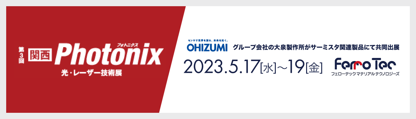 | 出展内容 | FTMT: サーモモジュール(ペルチェ素子)、サーモモジュール関連製品、チラー製品 大泉製作所: サーミスタ |
