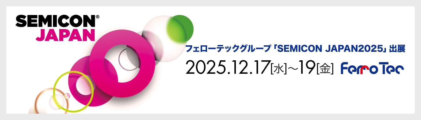 | 出展企業 | ■㈱フェローテック:半導体製造装置向け部材(石英・セラミックス・CVD-SiC)、真空シール 、磁性流体、サーモモジュール等 ■フェローテックシリコンジャパン㈱:シリコンパーツ ■㈱コスモ・サイエンス:真空装置等受託製造 ■フェローテックテクノロジーデベロップメントジャパン㈱:精密部品再生洗浄サービス ■フェローテック・パワーセミコンダクター㈱:パワー半導体用基板 ■㈱大泉製作所:サーミスタセンサ ■フェローテック・セミコンダクター・マテリアル㈱:シリコンウエーハ ■上海漢虹精密機械有限公司:インゴット引上げ装置等 |